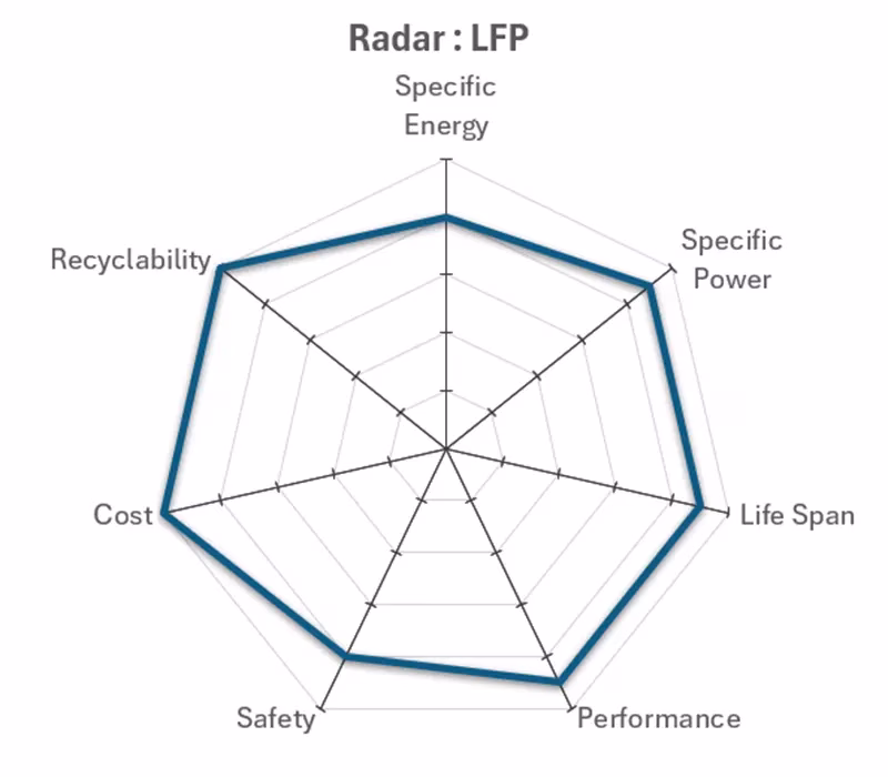 Combined with a BMS, Lithium Iron Phosphate (LifePO4 – LFP) is currently the most secure Lithium-Ion technology on the market.